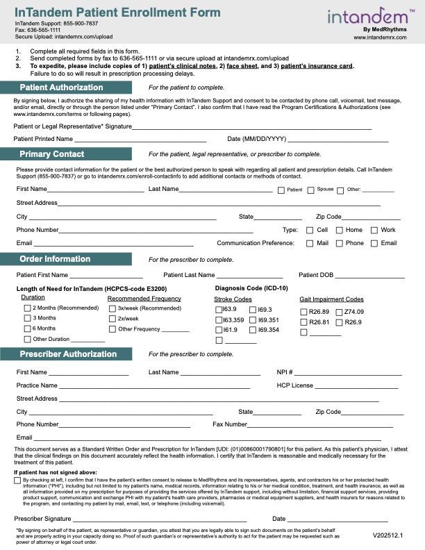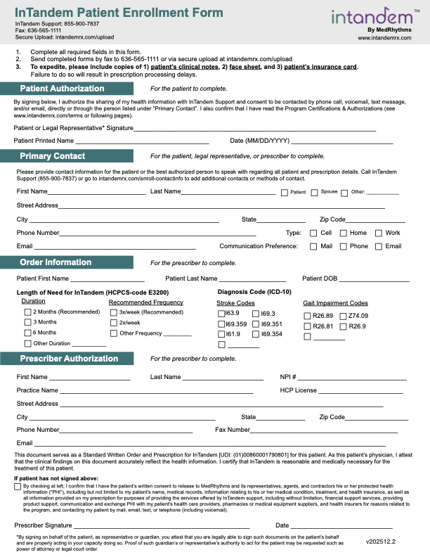 Please fill out the PEF to submit an InTandem prescription